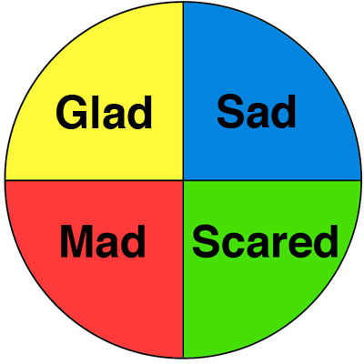 Children in all cultures evidence four basic emotions: anger, fear, sadness, and joy. These emotions blend into the whole spectrum of human feelings. Emotions may be considered separately, but it is important to understand that they are each only part of the whole of our experience. The fully alive human being is capable of feeling all the emotions. Increasing our aliveness, our wellness, means becoming aware of our feelings, accepting them as OK, and developing healthy ways of expressing them. Life would be awfully boring without the creative tension of sadness and joy that any moment may hold. You can increase your emotional awareness if you stop and ask yourself What am I feeling?" frequently throughout the course of a day. Awareness in general can be enhanced by using any number of creative cues - signs, strings around the finger, colored dots on keys or wristwatch bands, computer screen pop-ups - that remind you of the issue that you may currently be working with.